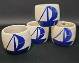 UP FOR SALE: Set of 4 Ceramic Blue and White Asian Style Fishing Boat Napkin Ring Holders