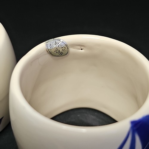 - Set of 4 Ceramic Blue and White Asian Style Fishing Boat Napkin Ring Holders