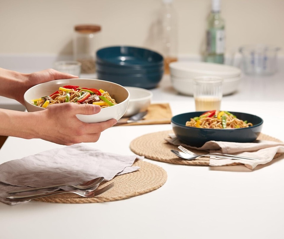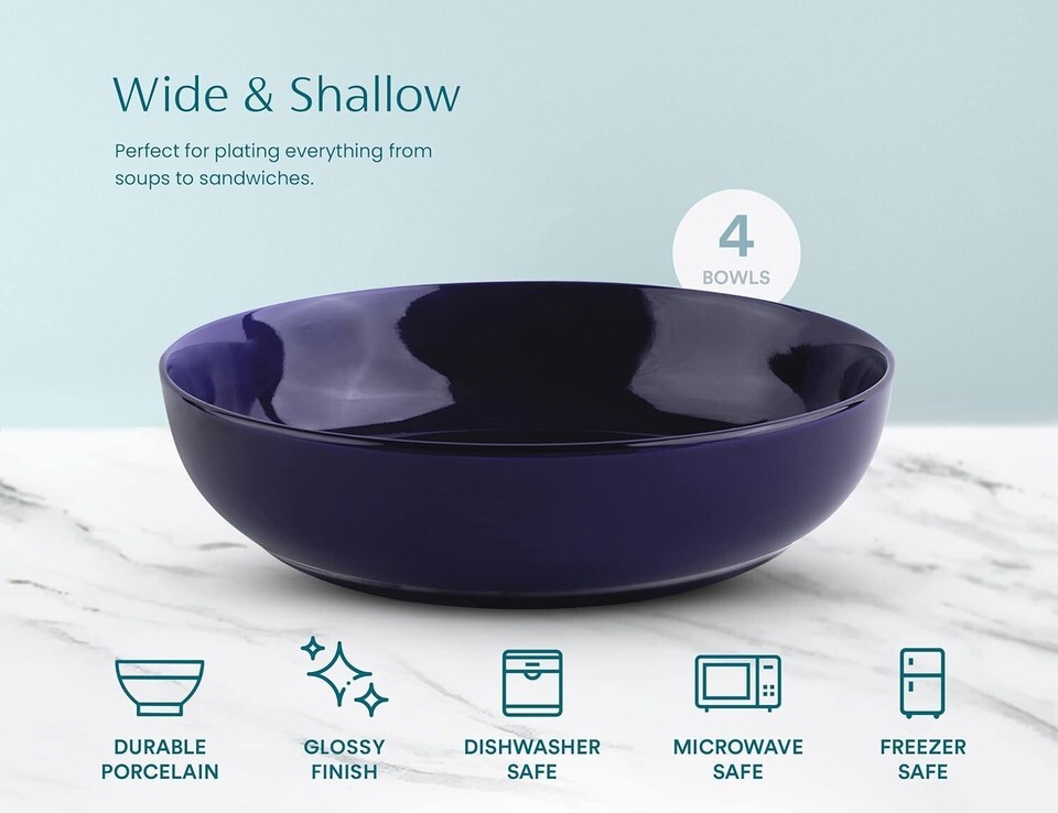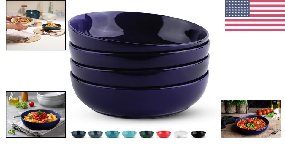- Set of 4 Cobalt Ceramic Serving Bowls - Large 40oz, Microwave & Dishwasher Safe