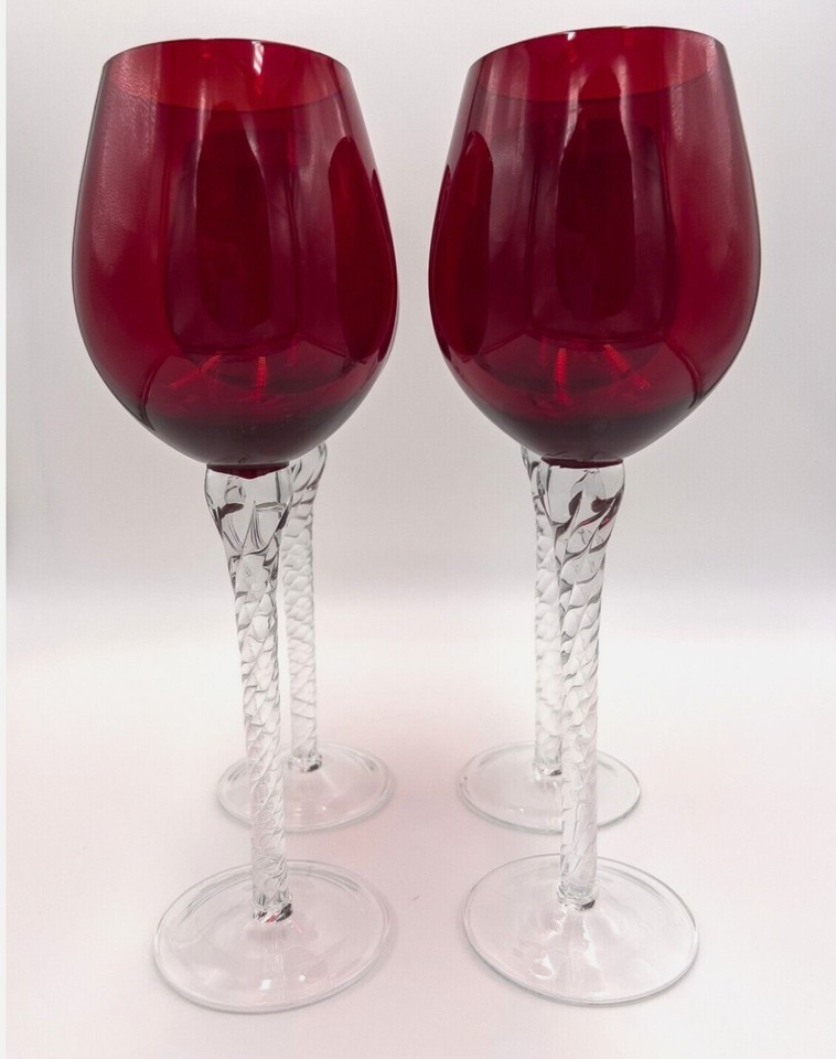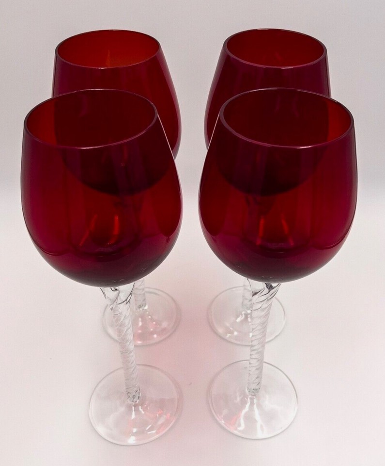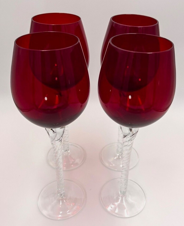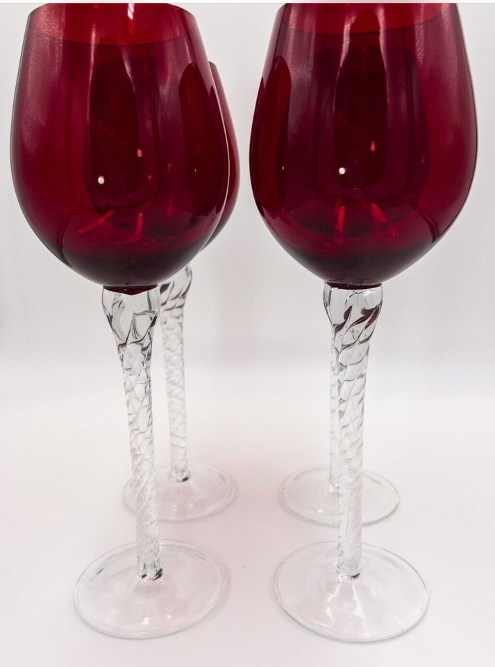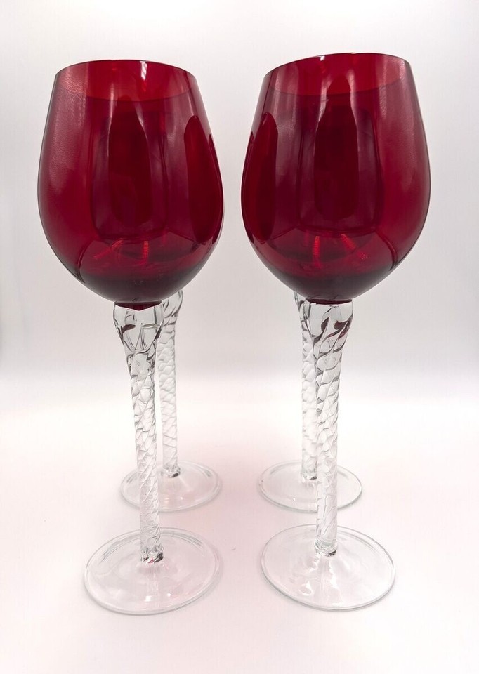 - Set of 4 Elegant 9 1/2” Tall Crystal Ruby Red Wine Glass with Clear Twist Stem