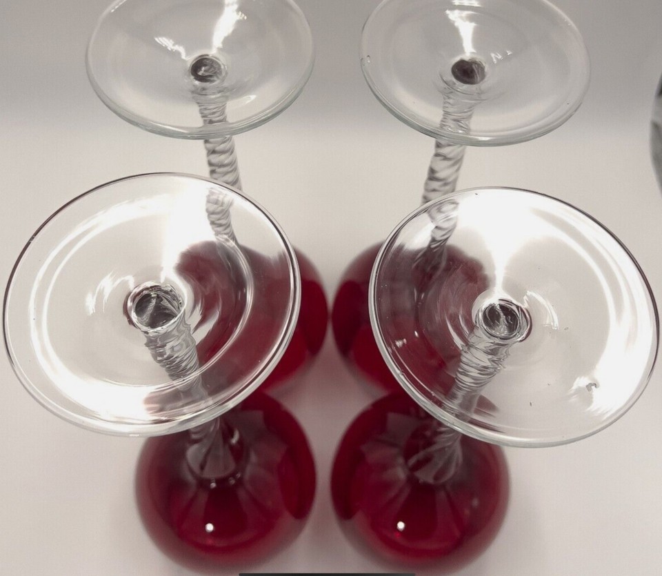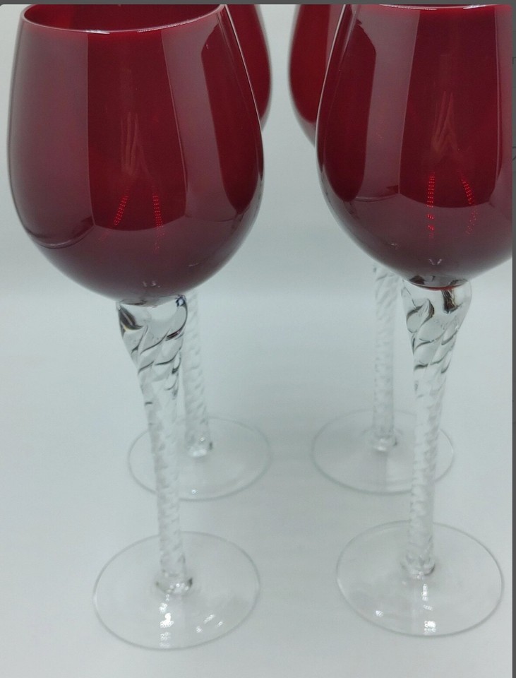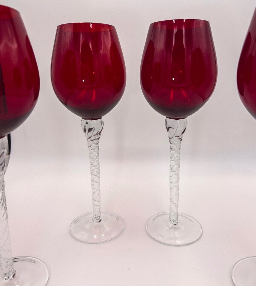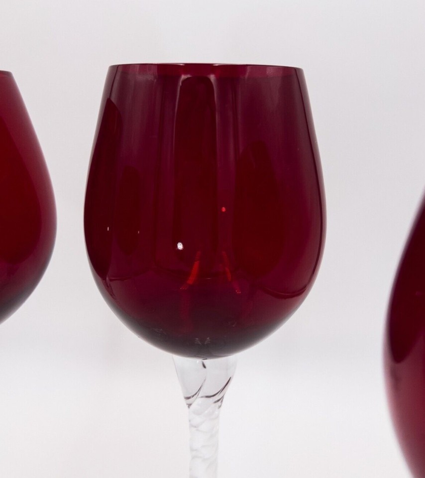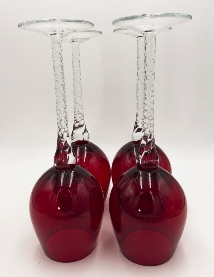 - Set of 4 Elegant 9 1/2” Tall Crystal Ruby Red Wine Glass with Clear Twist Stem