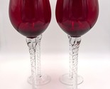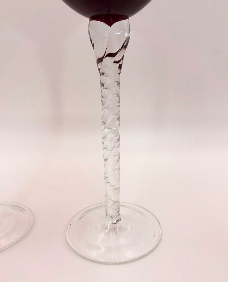 Set of 4 Elegant 9 1/2” Tall Crystal Ruby Red Wine Glass with Clear Twist Stem