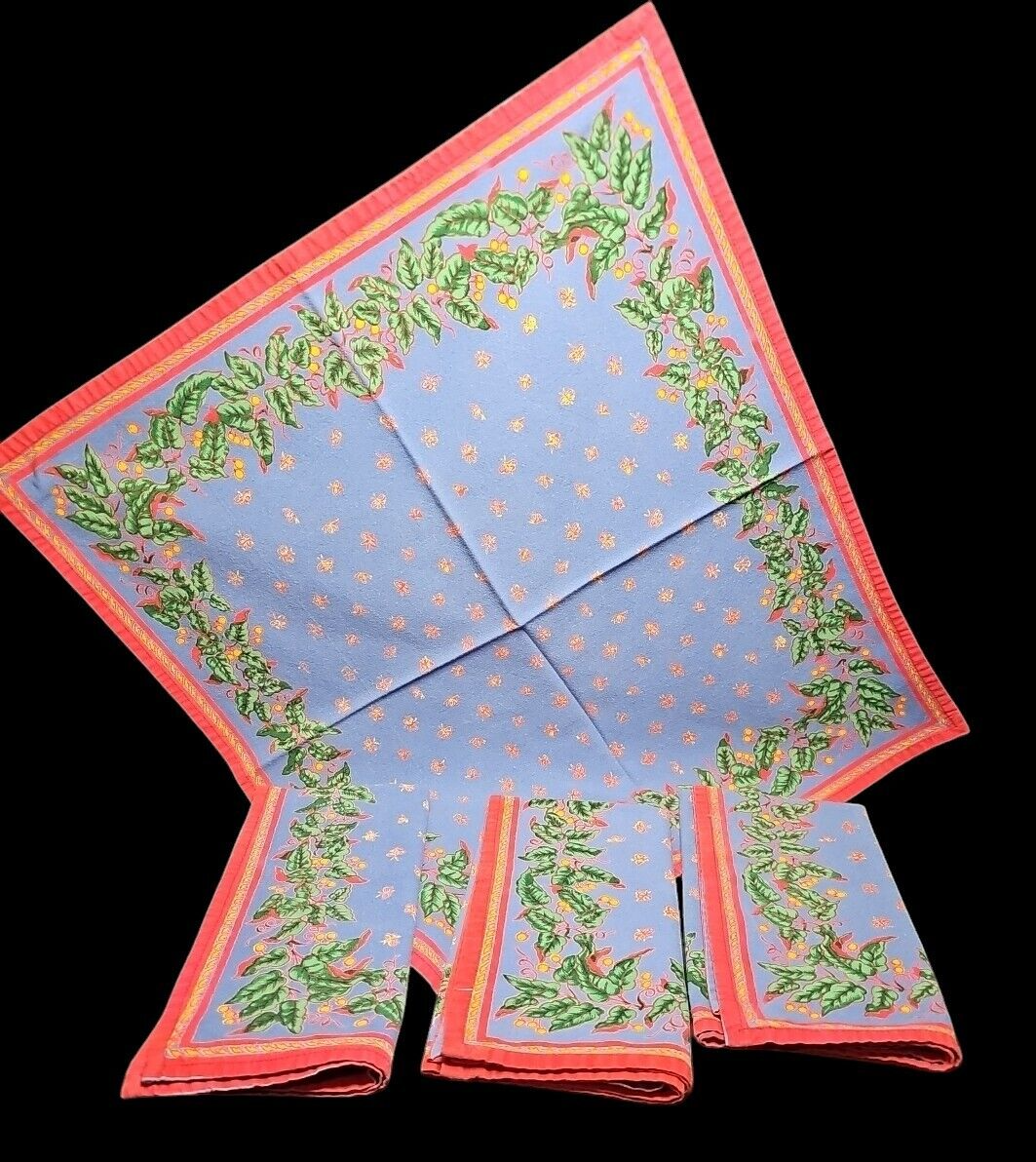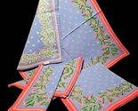 Set of 4 Four Vintage Williams Sonoma Cotton Napkins Blue Red Floral Pattern
