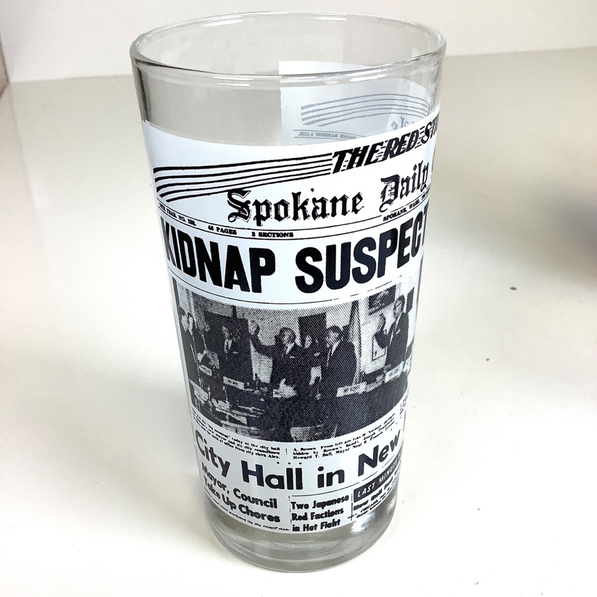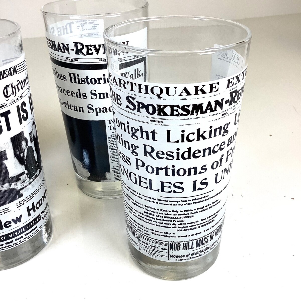 - Set of 4 Spokane Daily Chronicle Spokesman Review Newspapers Vtg Bar Glasses