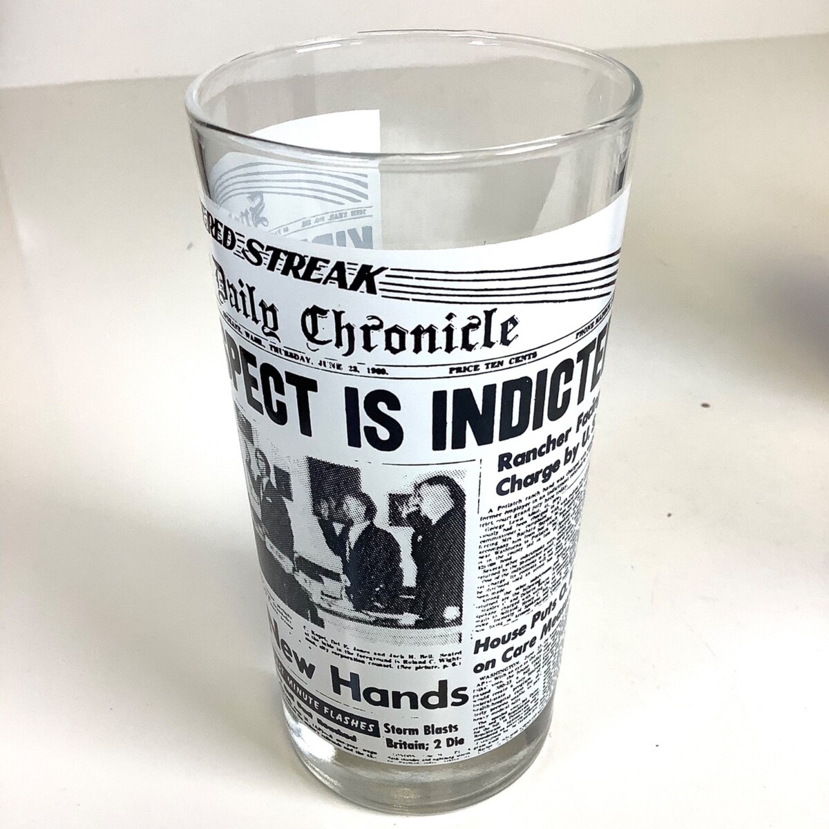 Set of 4 Spokane Daily Chronicle Spokesman Review Newspapers Vtg Bar Glasses. Show some minor wear but overall good condition. Each glass measures approximately 5.75 inches high. Please see all photos.