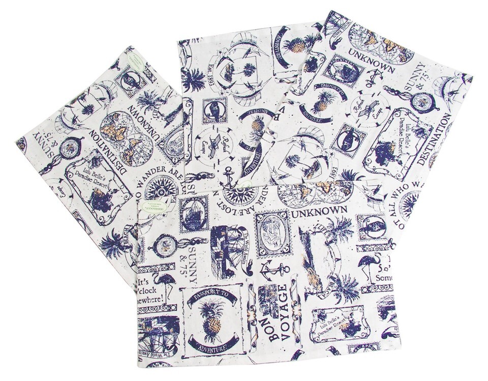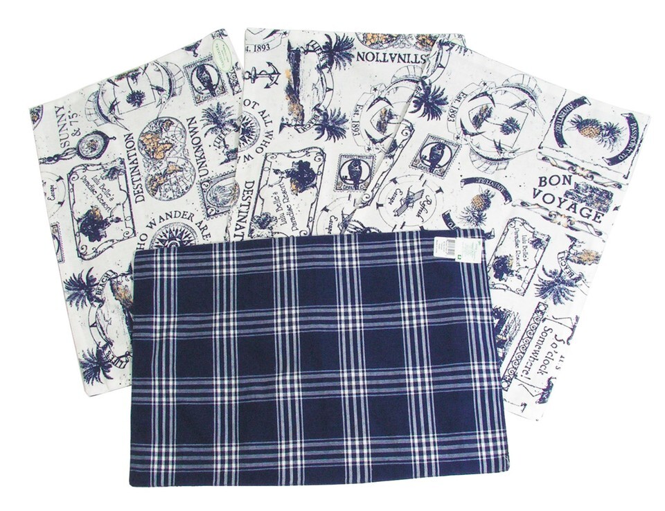 - Set of 4 Vintage Stamp Nautical Travelogue Placemats by Park Designs Reversible
