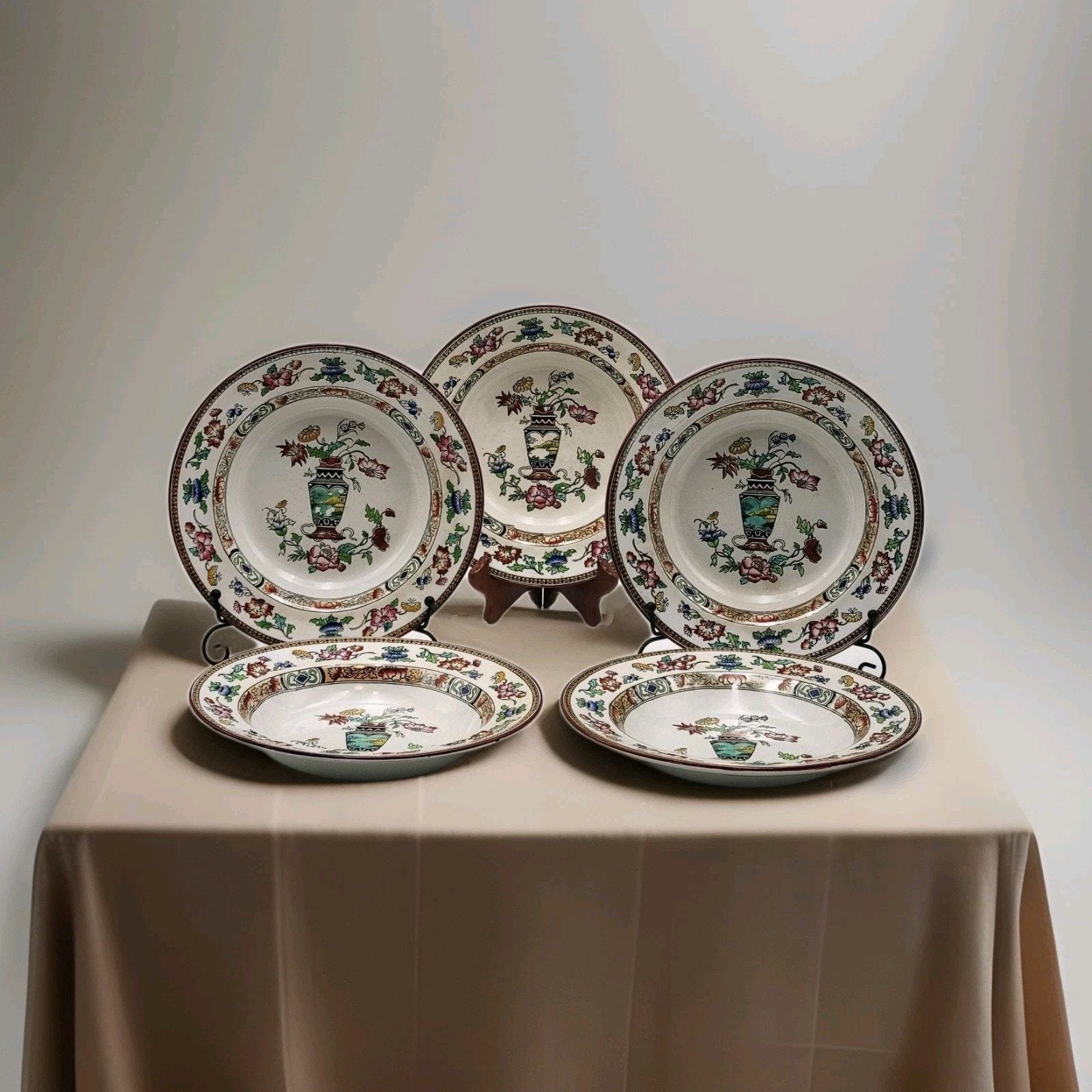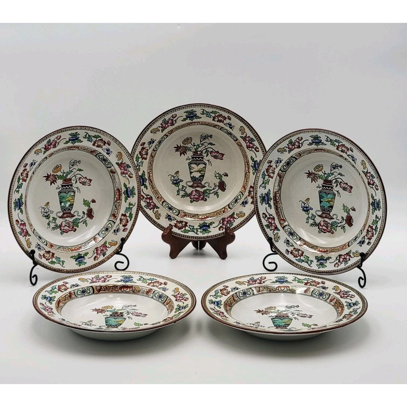 - Set of 5 Brownfield & Sons Trademark Soup Plates Ironstone Antique Number 115