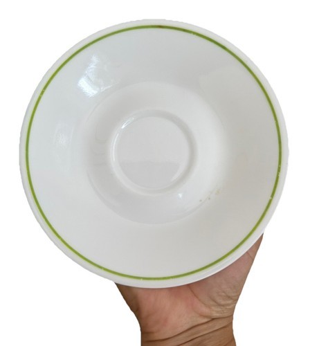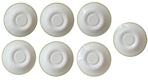 - Set of 7 Corelle Saucer's 6 1/4 in Light Green Rim Vintage