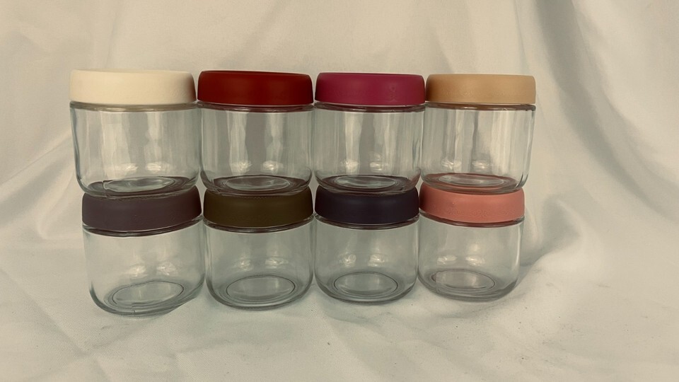 - Set of 8, 10 oz Glass Jars for Food, Yogurt with Airtight Lids, New in Box
