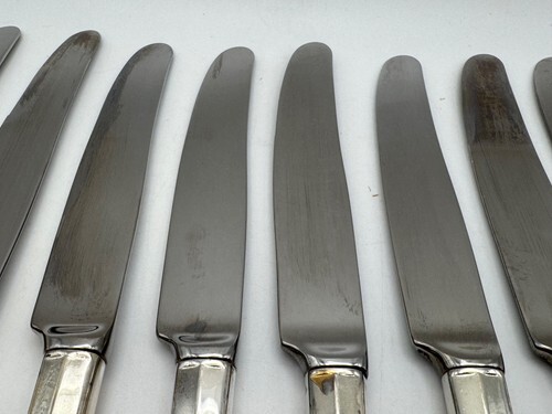 These dinner knives measure 9 1/4" in length and are in very good estate condition with no excessive wear.