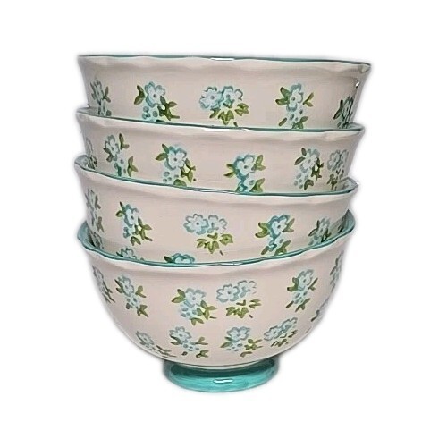 Set of Four (4) Pioneer Woman ~ TEAL ~ Timeless Floral ~ 6" ~ Stoneware Bowls