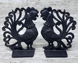 Set of RUSTIC Farmhouse Bookends Black Cast Iron Chicken Hen Rooster Vintage