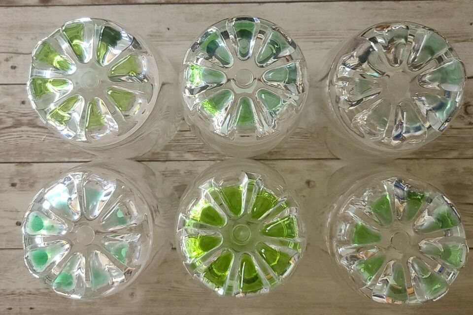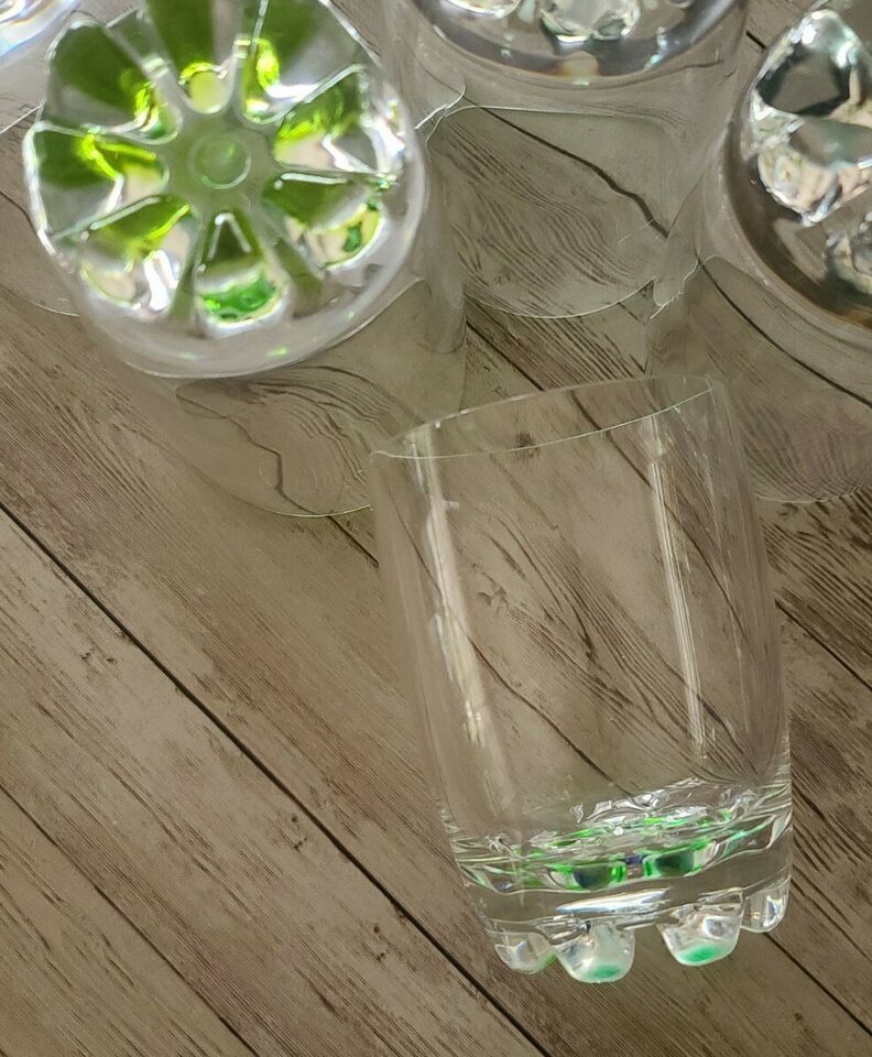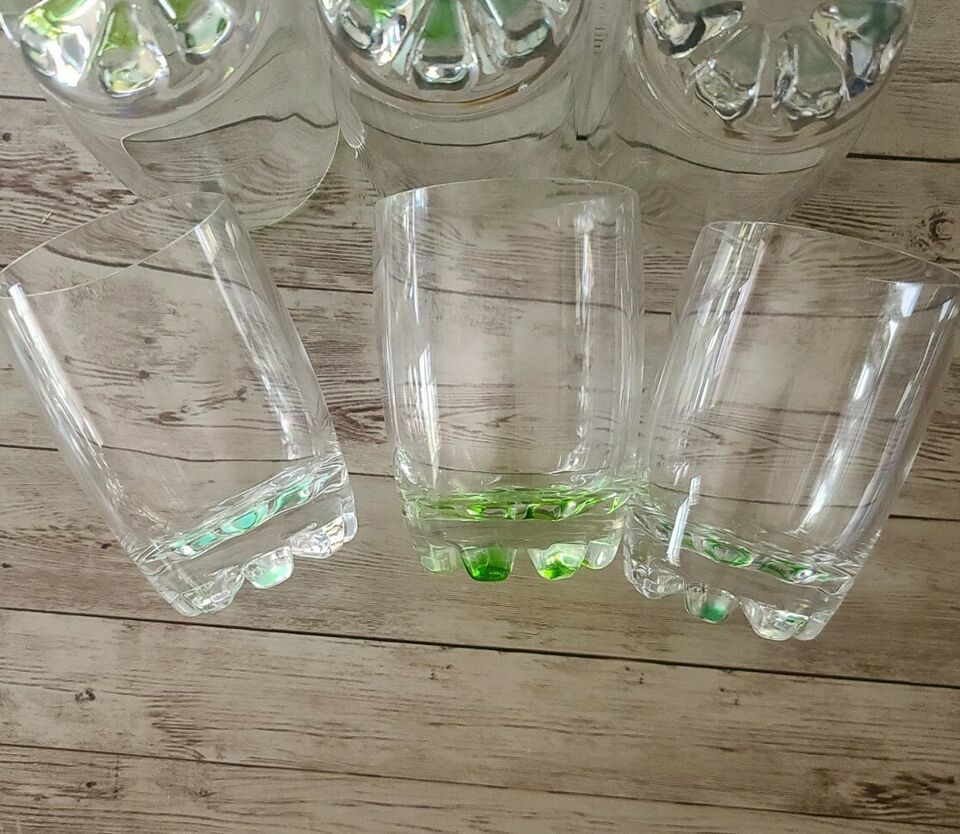 Drinking glasses measure approximately 4.5" tall x 3.25" diameter