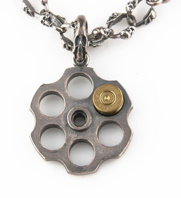 - Sevan Avakian Sterling Silver .45 Caliber Chamber Pendant w/ Skull Chain