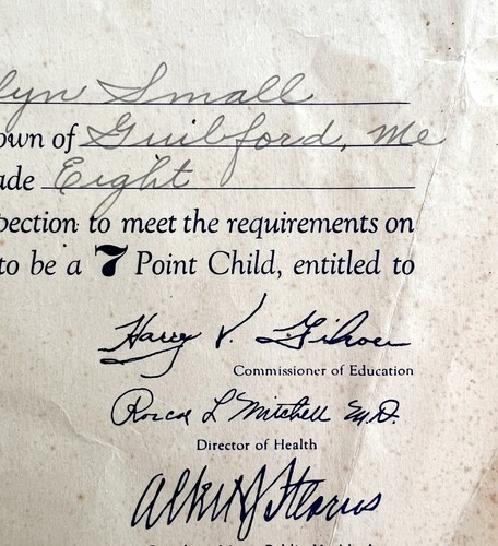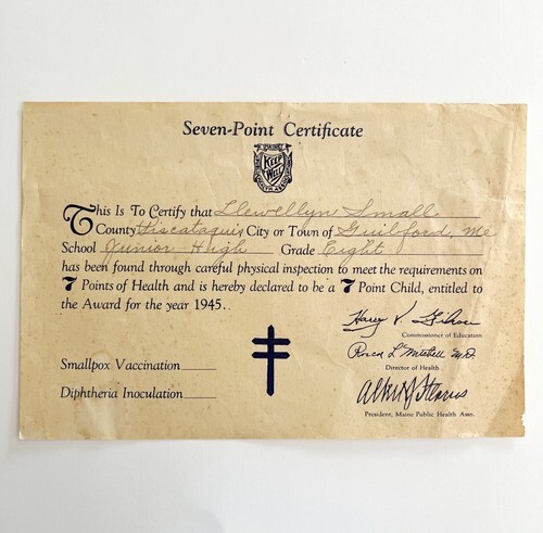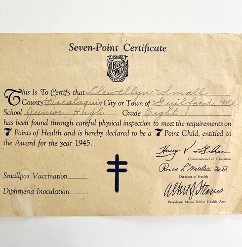 - Seven Point Child Award Health Certificate 1945 Guilford Maine Official DWS9A