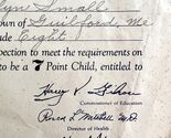 Seven Point Child Award Health Certificate 1945 Guilford Maine Official DWS9A