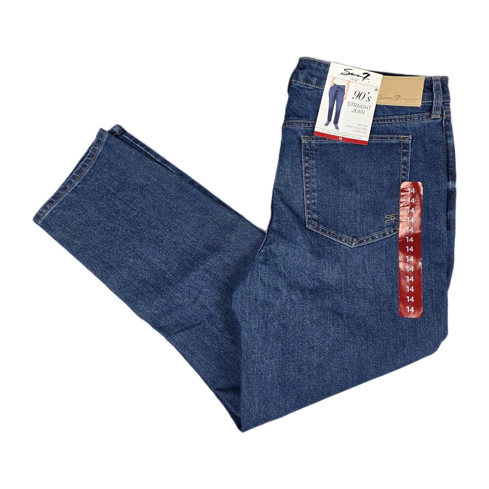 - Seven7 Jeans Womens Size 14 90's Straight Jean In Divine Blue Denim Pants New
