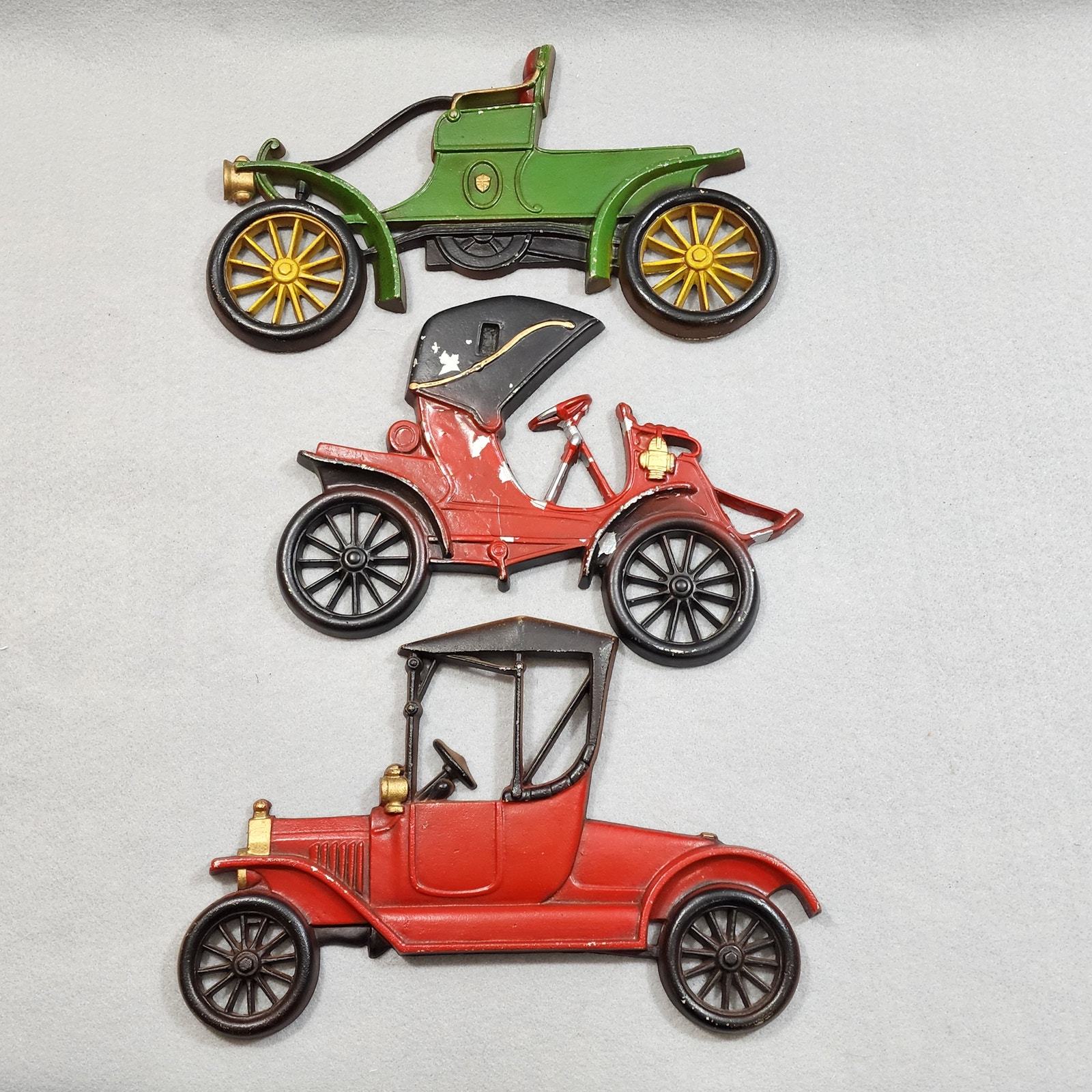 Sexton Midwest USA x3 Vintage Die Cast Metal Cars Hanging Wall Art Gifts For Him