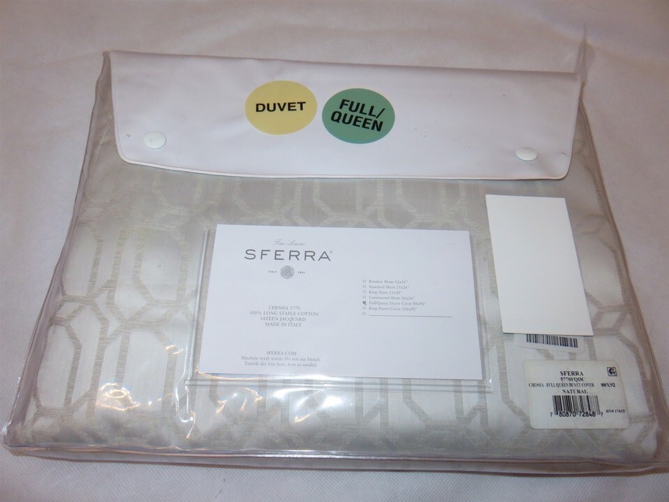 - Sferra Chessia Full Queen Duvet Cover Geometric Italy Natural
