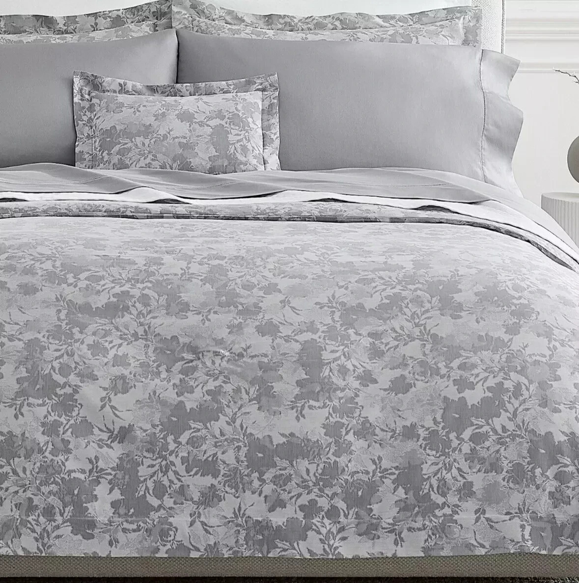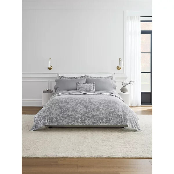 - Sferra Chiara Grey King Sham Slate Floral 100% Cotton Sateen Jacquard Italy NEW