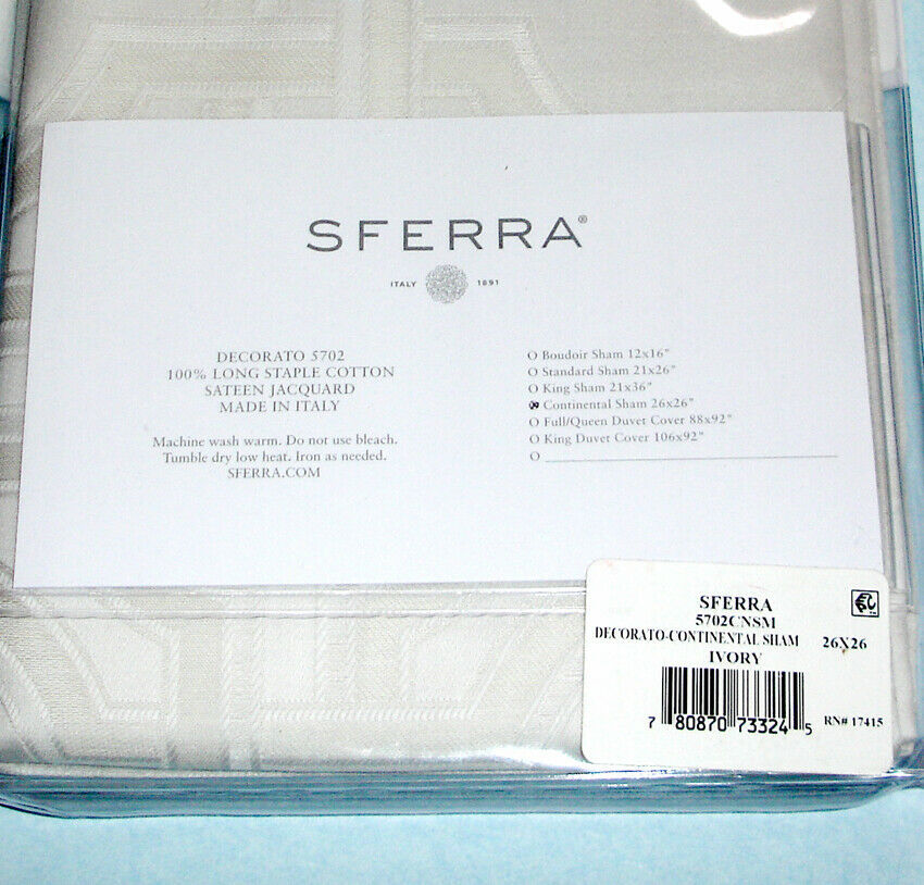 - Sferra Decorato Euro Continental Sham Ivory Cotton Sateen Jacquard Geometric New