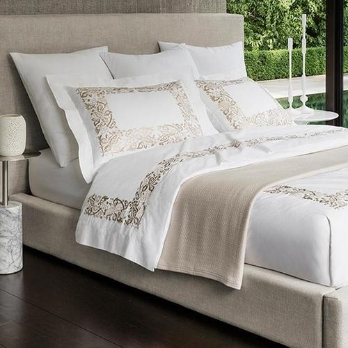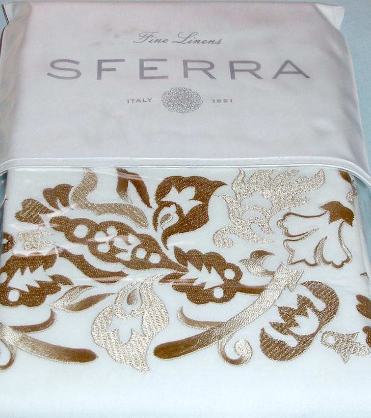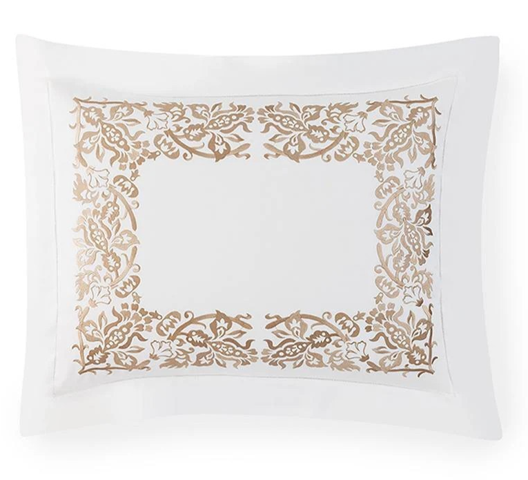 - Sferra Saxon Standard Sham Champagne Floral Embroidery 460 TC Cotton Percale New