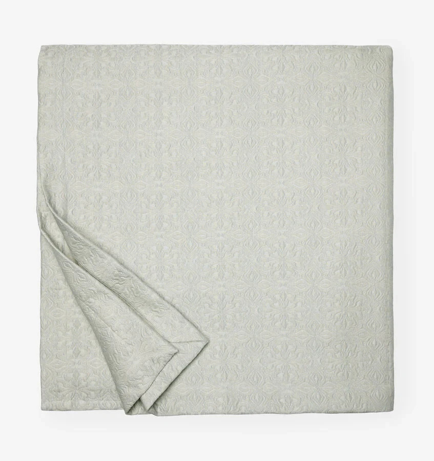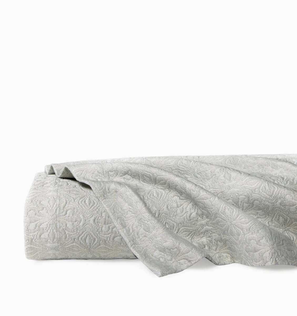 A nod to centuries-old tile motifs, Veroli’s intricate pattern is yarn-dyed and woven in Italy into a soft, lucent, lightweight coverlet and shams.