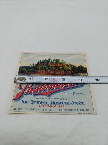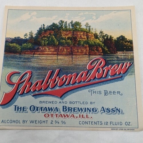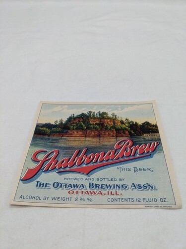 - Shabbona Brew The Ottawa Brewing Beer Label 4 1/2" X 4"