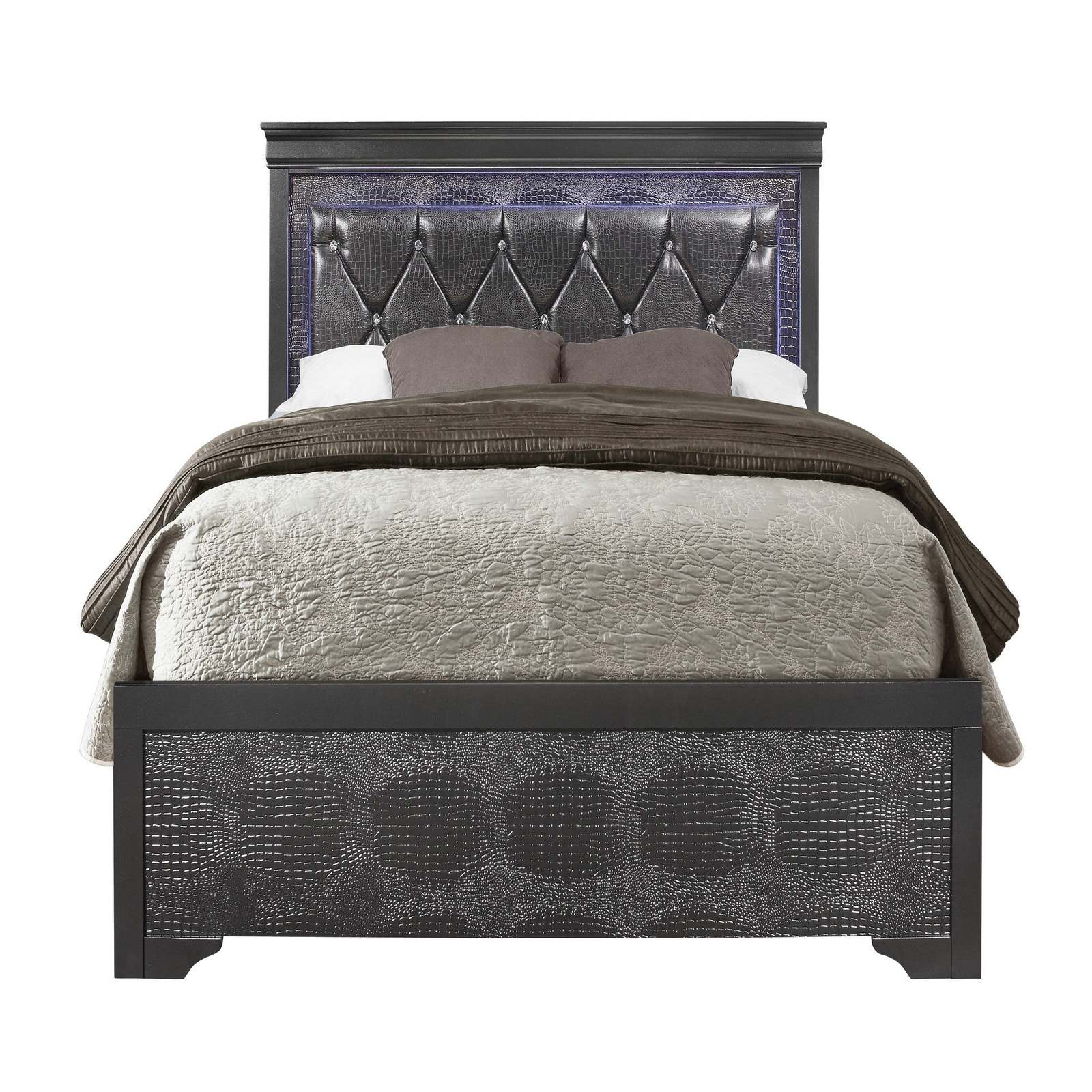 - Shaker Grey Queen Bedroom Set with Crystal Tufted Headboard LED