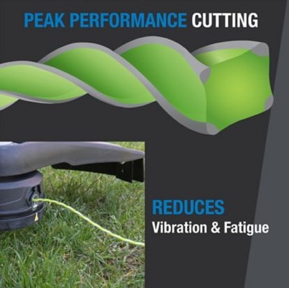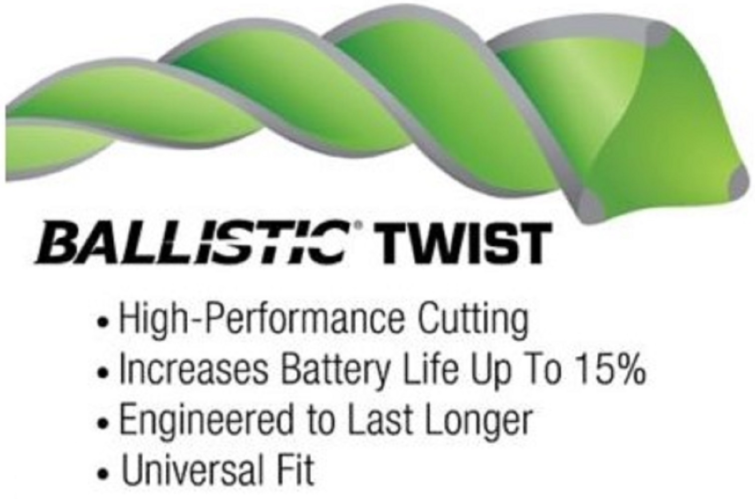 Designed for heavy-duty use and lasts significantly longer than standard trimmer lines A universal fit and .105 in. diameter allows the Ballistic trimmer line to work with most straight shaft gas string trimmers A unique aerodynamic twist design reduces line vibration and provides a cleaner, more level cut Flexible enough to be used for trimming and edging grass, weeds, and edging Includes a bonus line cutter for convenient and quick line cuts The versatile .105 in. trimmer line is compatible with all brands, such as Cub Cadet, Echo, Stihl, Husqvarna, Redmax, Ryobi, Black Decker, Weed Eater, Poulan, MTD, and more The Ballistic Twist trimmer line also comes with a cut 180 ft. cage Proudly made in the USA under tight quality controls for assurance