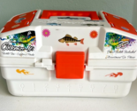 Shakespeare Customize-It Tackle Box. This sturdy tackle box is designed for the young angler. It has 2 outside compartments, a removable tray with a no spill cover and comes with some of the original tackle as well as some extra bobbers. Great for a fishing trip with someone special. Very Good Used Condition - Does not have all of the original contents, but the box is sound - See Photos for further description.