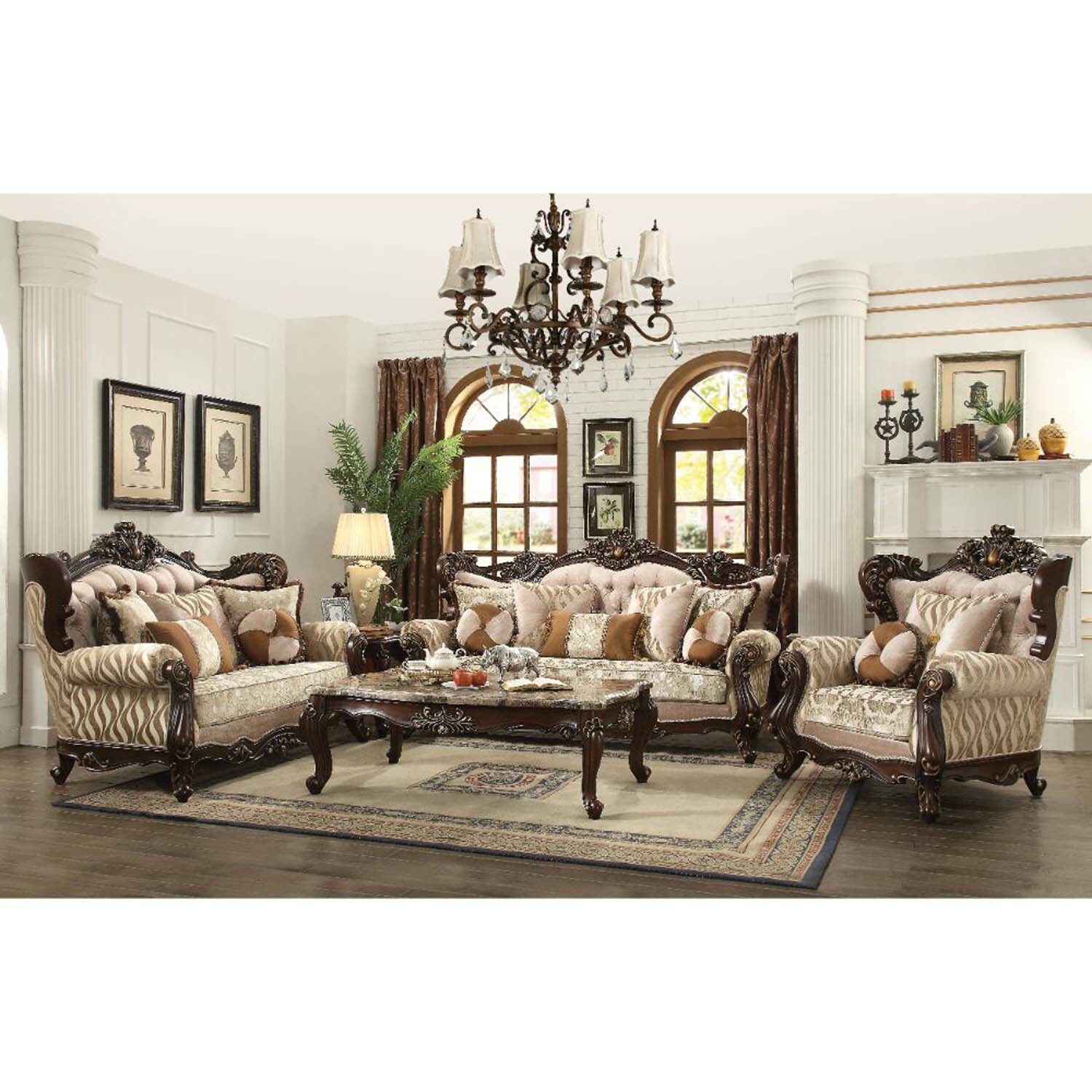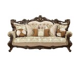 Features: Comes with 7 Pillows Oversized Floral-Scrolled Carving Trim with Nailhead Trim: Contrast Gold-Brush Accent, Poplar Wood (Front Armrest, Leg Base) Backrest Style: WingBack with Crystal like Button Tufted Tight Back Loose Seat Cushion Seat Construction: Frame Hardwood, Pocket Coil Included, Streamlined Cushion w/Welt Trim: 8" Thick (200mm), Not Reversible Set Includes: One (1) Sofa
