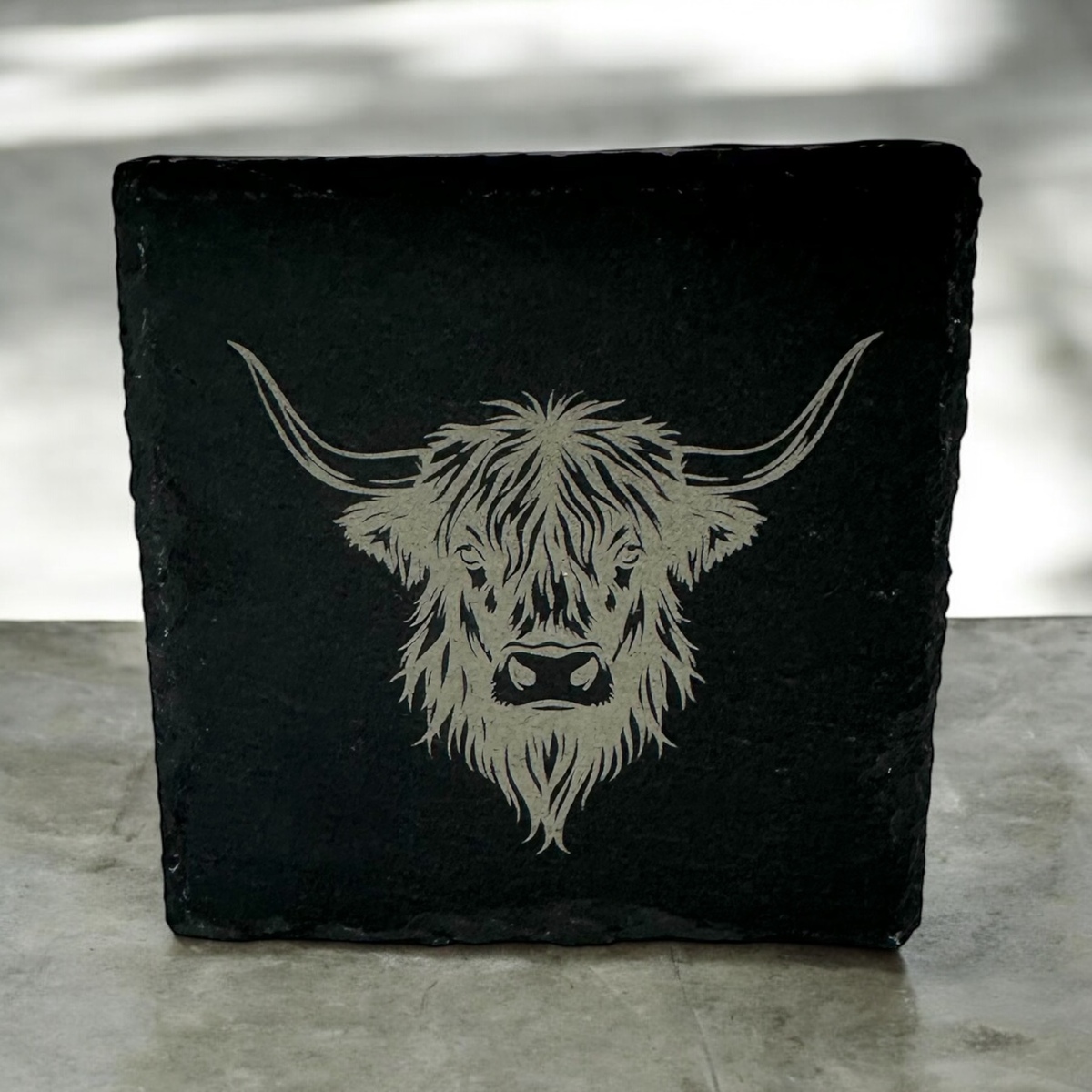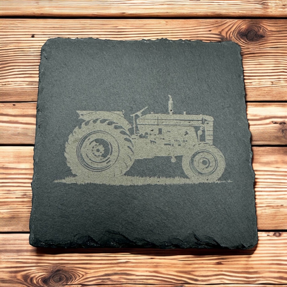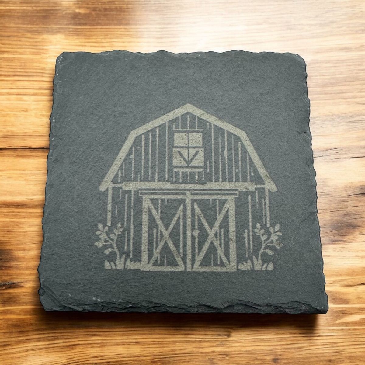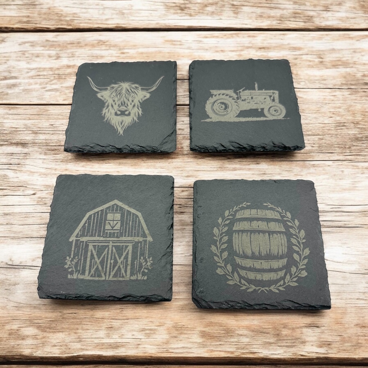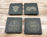 4-Pack Rustic Farmhouse Slate Coasters - Highland Cow, Tractor, Barn, Barrel