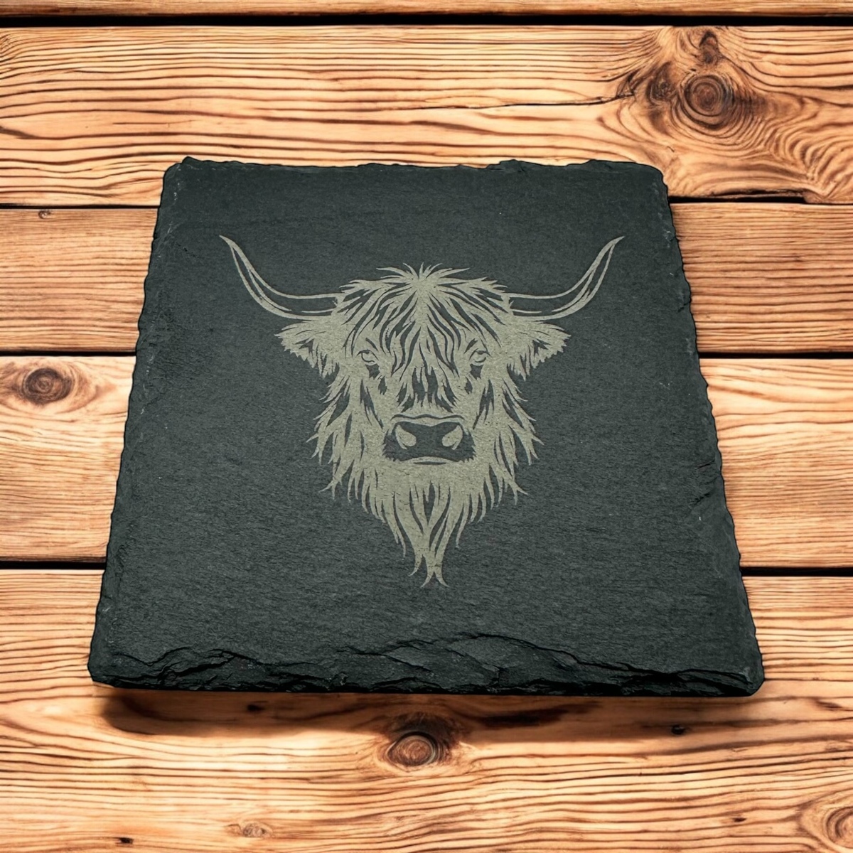 Share Rustic Farm Theme Slate Coaster Set | Highland Cow Barn Tractor Barrel