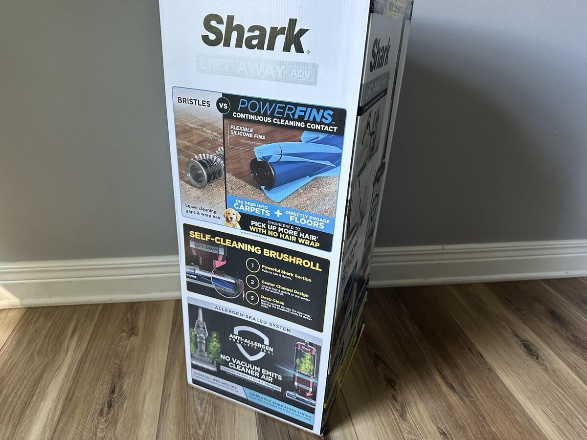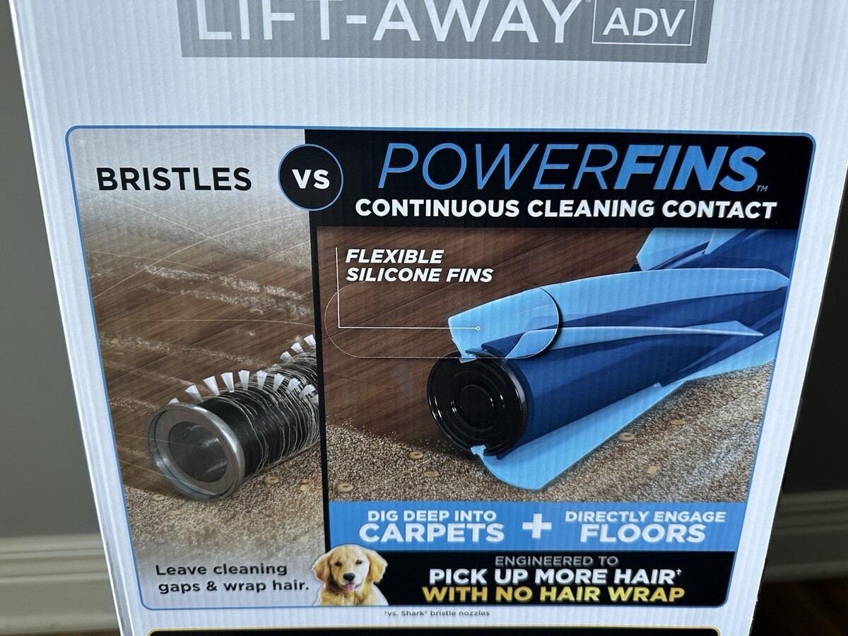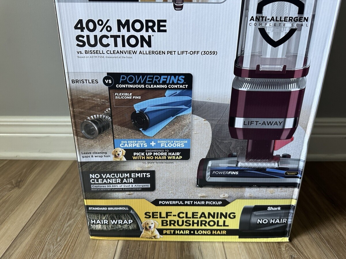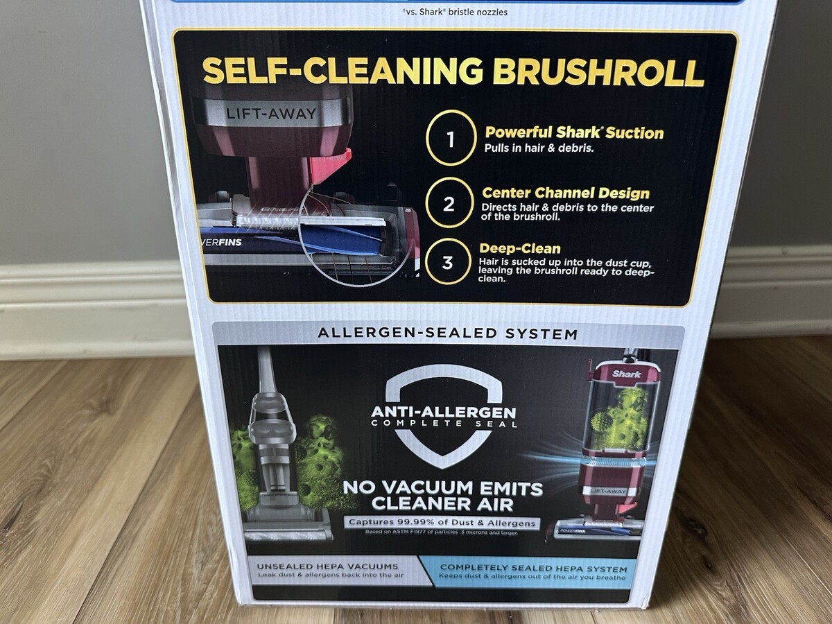 This Shark Lift-Away comes with a PowerFins? brushroll, a no-bristle system to deep-clean and pick up more in every pass (vs. original DuoClean)?all with no hair wrap, thanks to the self-cleaning brushroll. It also includes Anti-Allergen Complete Seal Technology with a filter to trap over 99.9% of dust and allergens inside the vacuum, keeping them out of the air you breathe. (Based on ASTM F1977 of particles .3 microns or larger.) LED headlights on the nozzle reveal hidden debris around your home, while Advanced Swivel Steering lets you easily maneuver in and out of tight spaces.