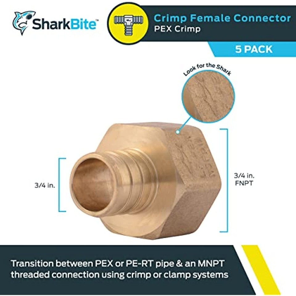 - SharkBite UC088LFA5 Brass Female Adapter, Pack of 1