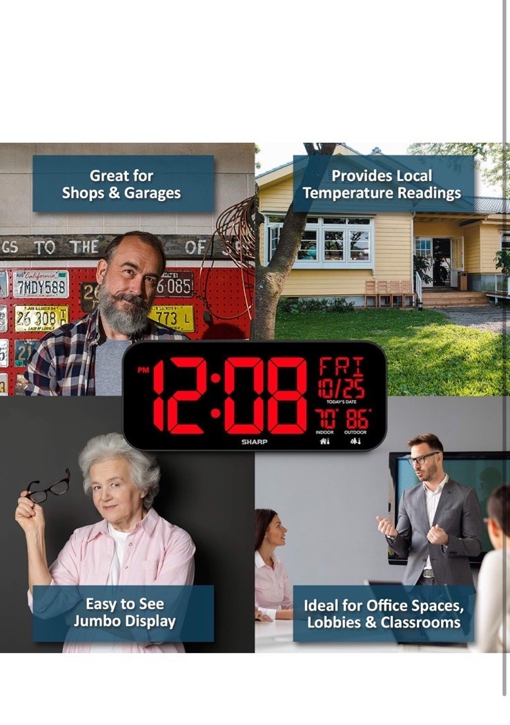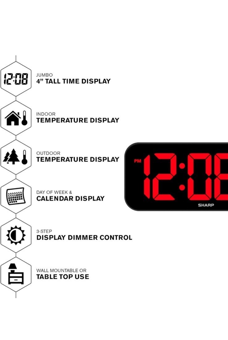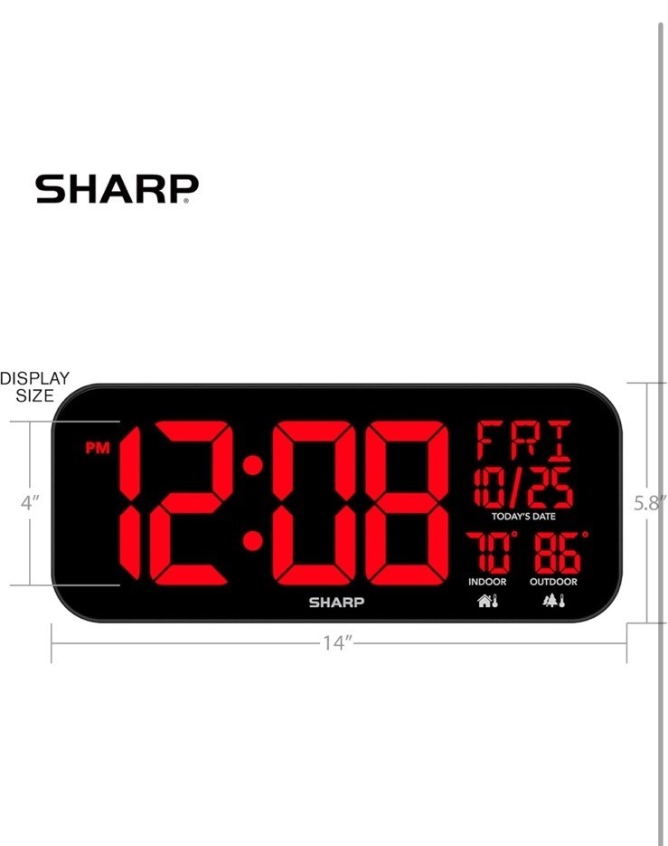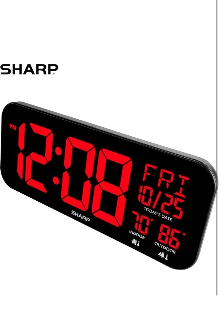 - Sharp Large Screen LED Clock With Outdoor Indoor Temperature With Sensor Perfect