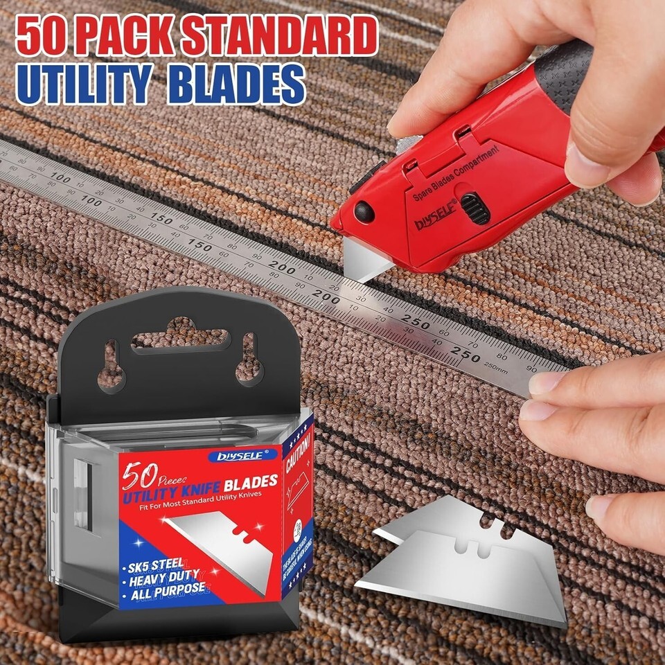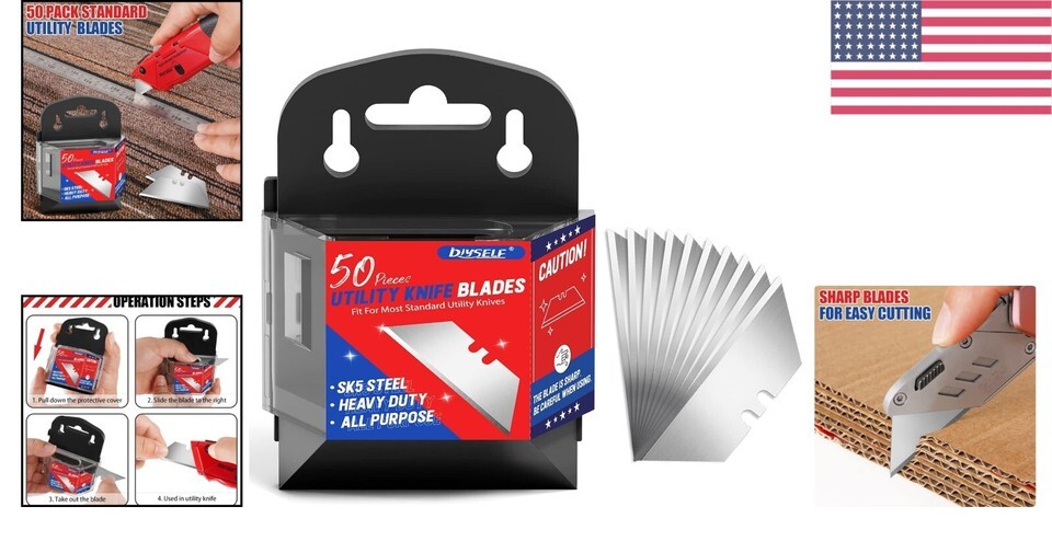 - Sharper 50 Pack Utility Knife Blades - High-Quality SK5 Steel Cutting Edges