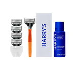 HARRY'S SHAVE KIT FOR MEN: Includes a Harry's Truman razor handle, five razor blade refills, Harry's Foaming Shave Gel, and a travel blade cover; Designed for your face, and not recommended for head shaving