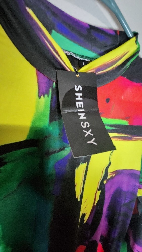 - Shein SXY mock Neck Brush Stroke Print Bodycon Dress LARGE Multicolor