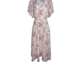 SHEIN WHITE PINK FLORAL MIDI HIGH NECK OPEN TIE BACK WAIST TIE SHORT SLEEVES XS