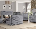 Platform bed serves as the centerpiece of this bedroom set, featuring built-in storage drawers for added functionality