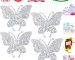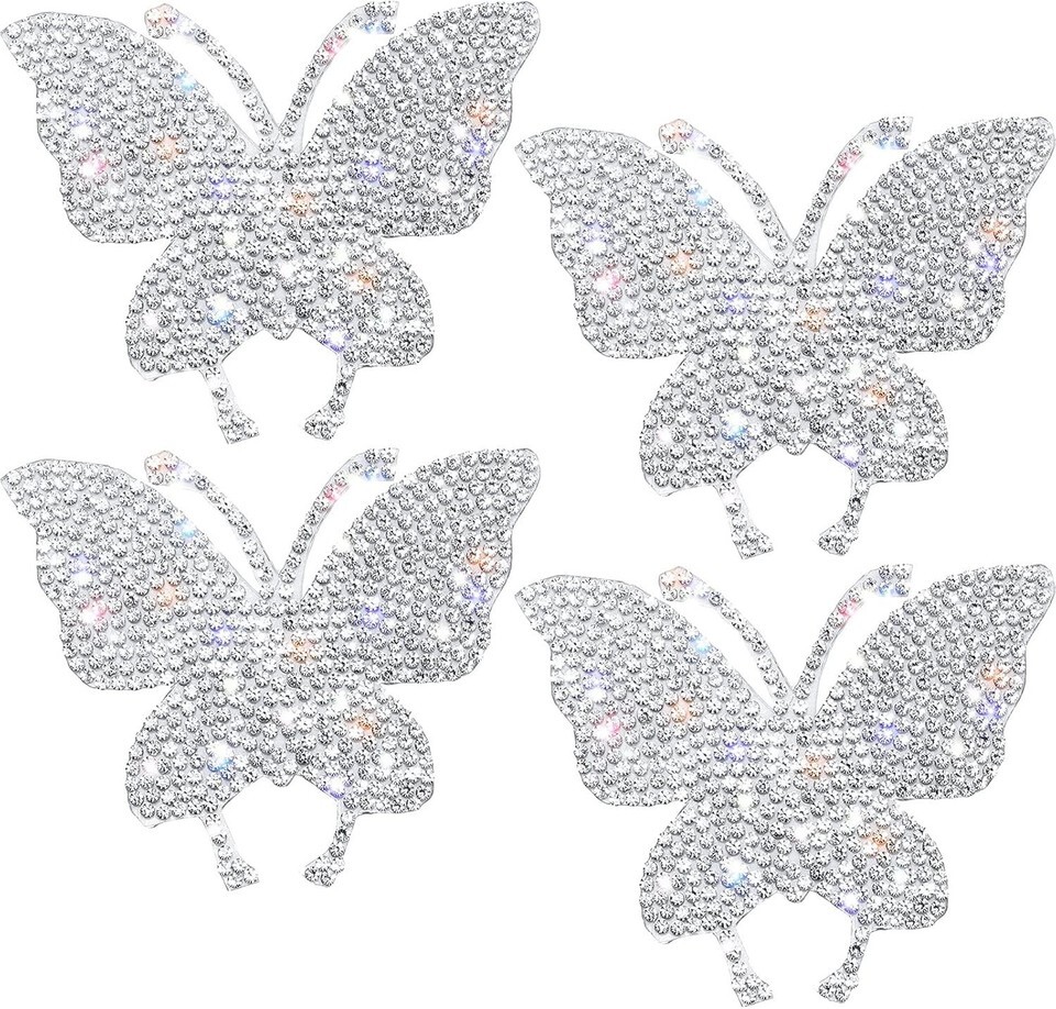 Package includes 4 pieces of butterfly crystal rhinestone car stickers measuring approximately 6 x 7 cm.