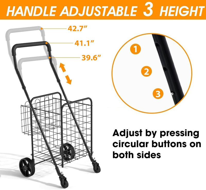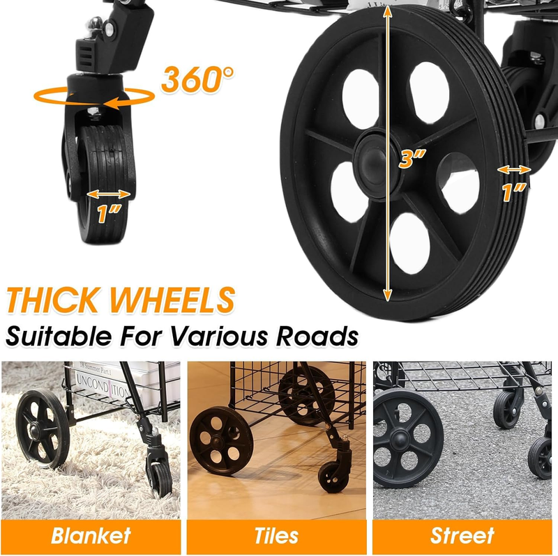 360¡a Swivel Front Wheels: For optimal maneuverability, make you roll this go-to shopping cart more easily during turning around or changing direction on the bumpy sidewalk