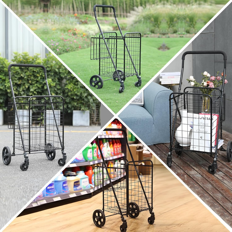 Grocery Cart Deluxe Folding Shopping Cart 360Rolling Swivel Wheels