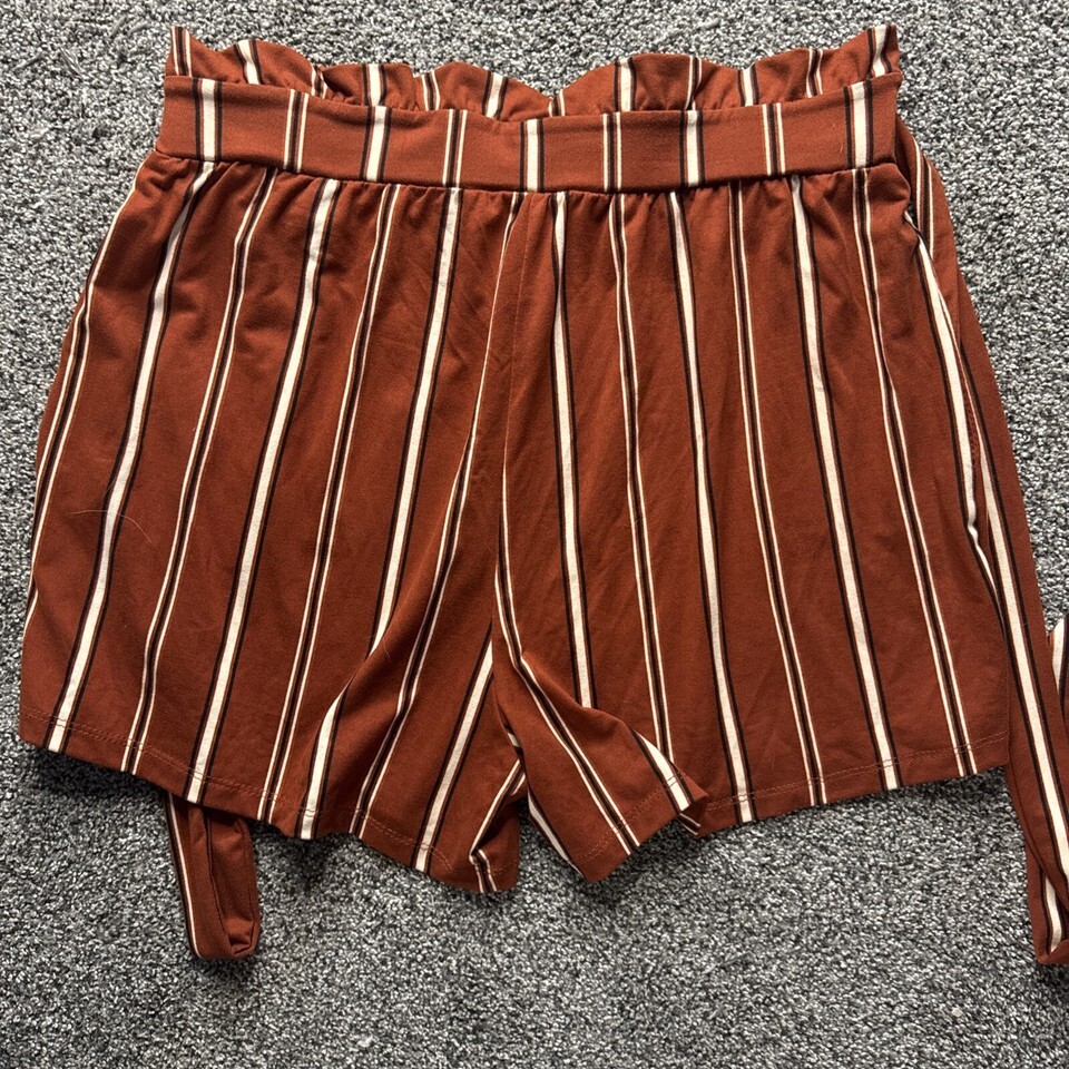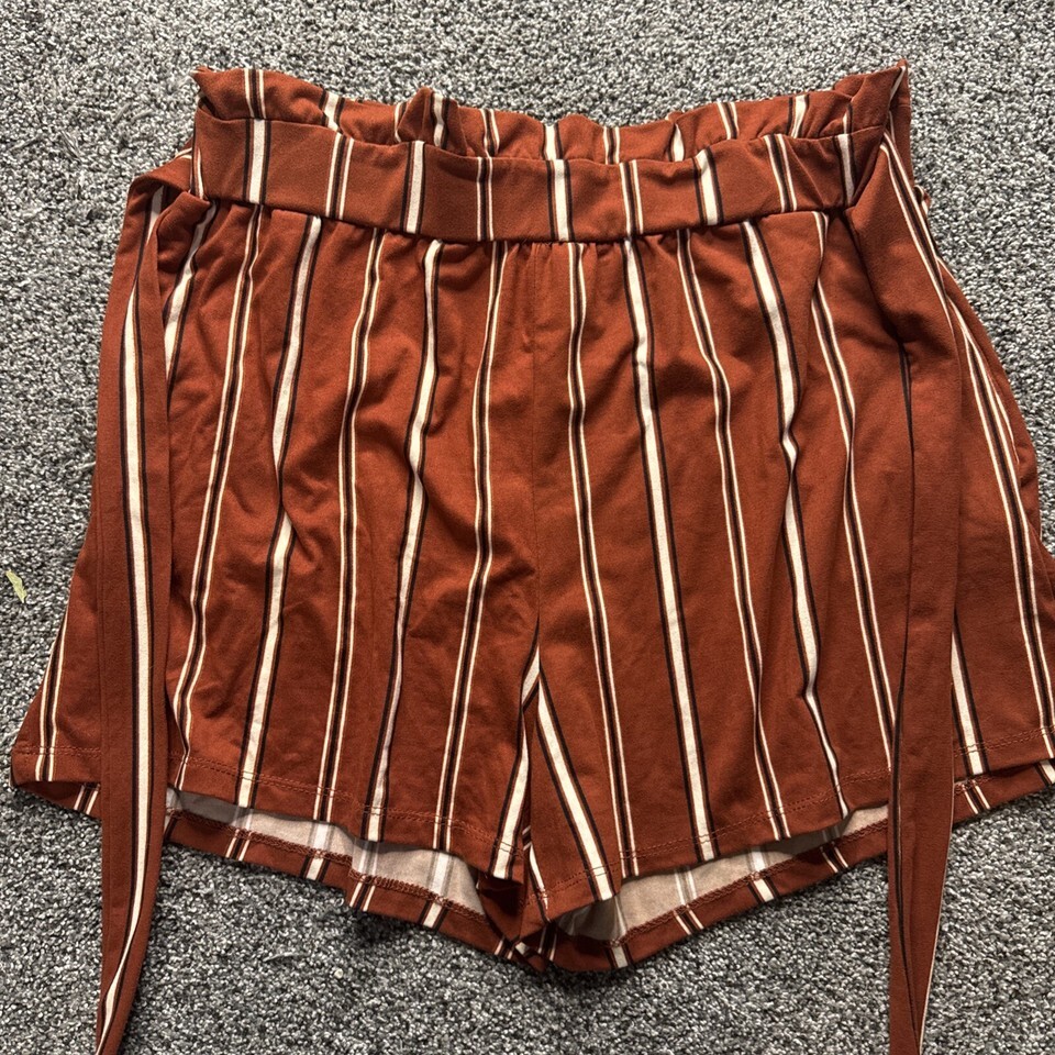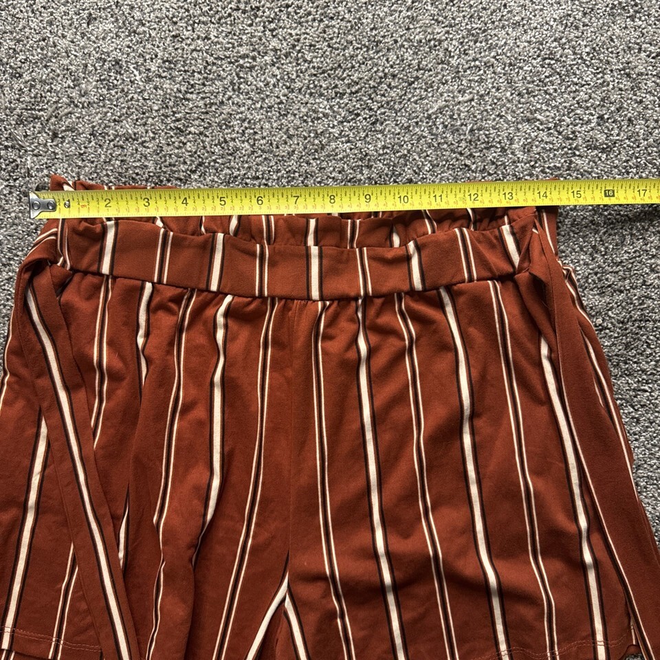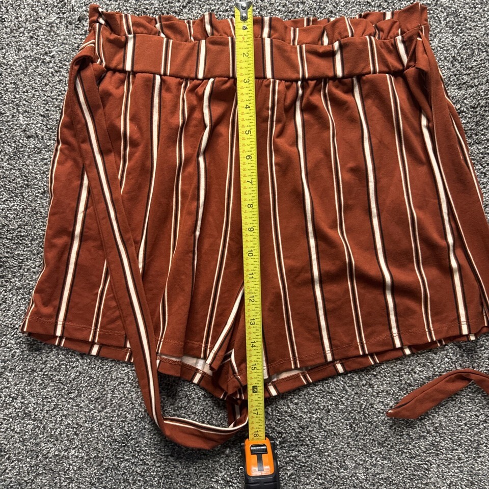 - Shosho Vertical Stripe Tie Waist Paperbag Shorts Large (L) Copper Red Orange
