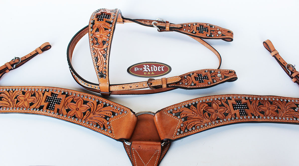 Show Tack Bridle Horse Western Leather Rodeo Headstall Breast Collar 85101