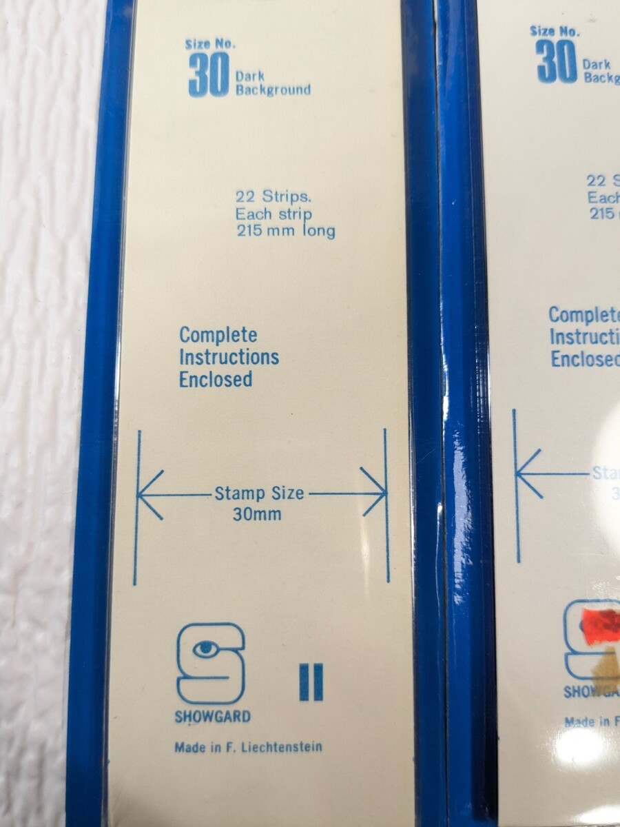 - Showgard Stamp Mounts size #30 dark background black 39 strips total Vintage