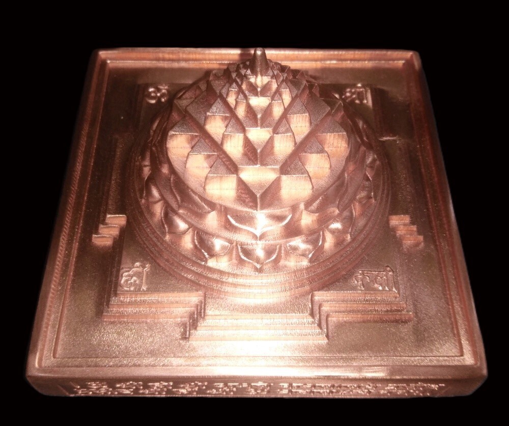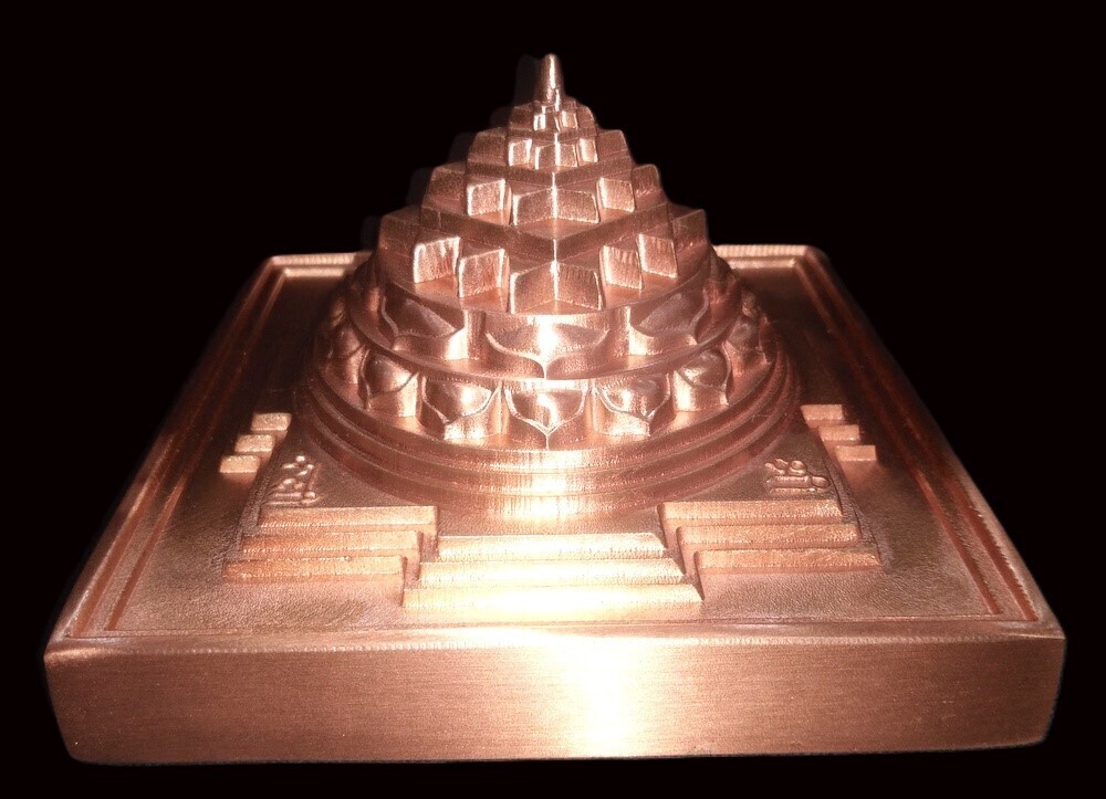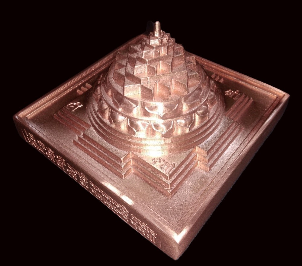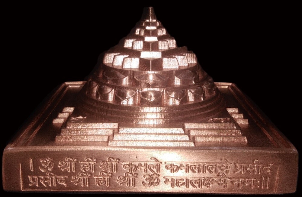 Este sriyantra esta hecho de cobre puro con una base gruesa que contiene el mantra mahalaxmi inscrito en su costado. Esto esta tradicionalmente enterrado en el centro de una trama (Nabhi Sathan) para garantizar continuas olas de prosperidad y bienestar para los habitantes.