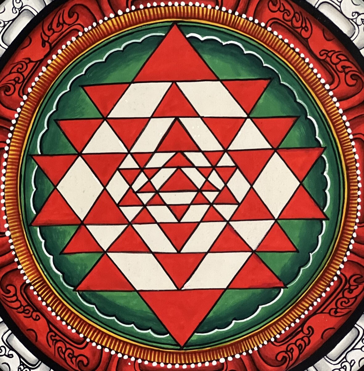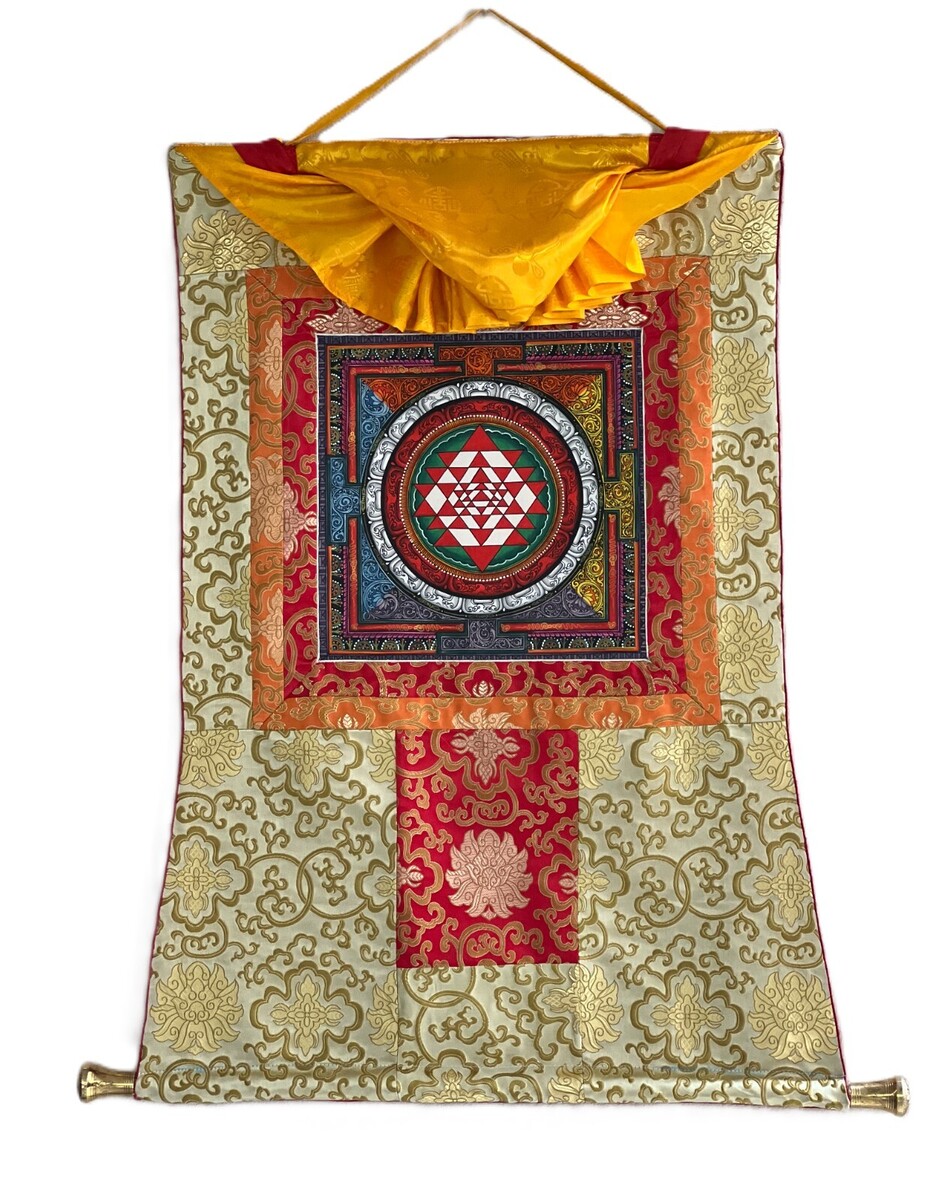 - SHRI YANTRA/ SRI YANTRA MANDALA ORIGINAL THANGKA PAINTING WITH SILK BROCADE